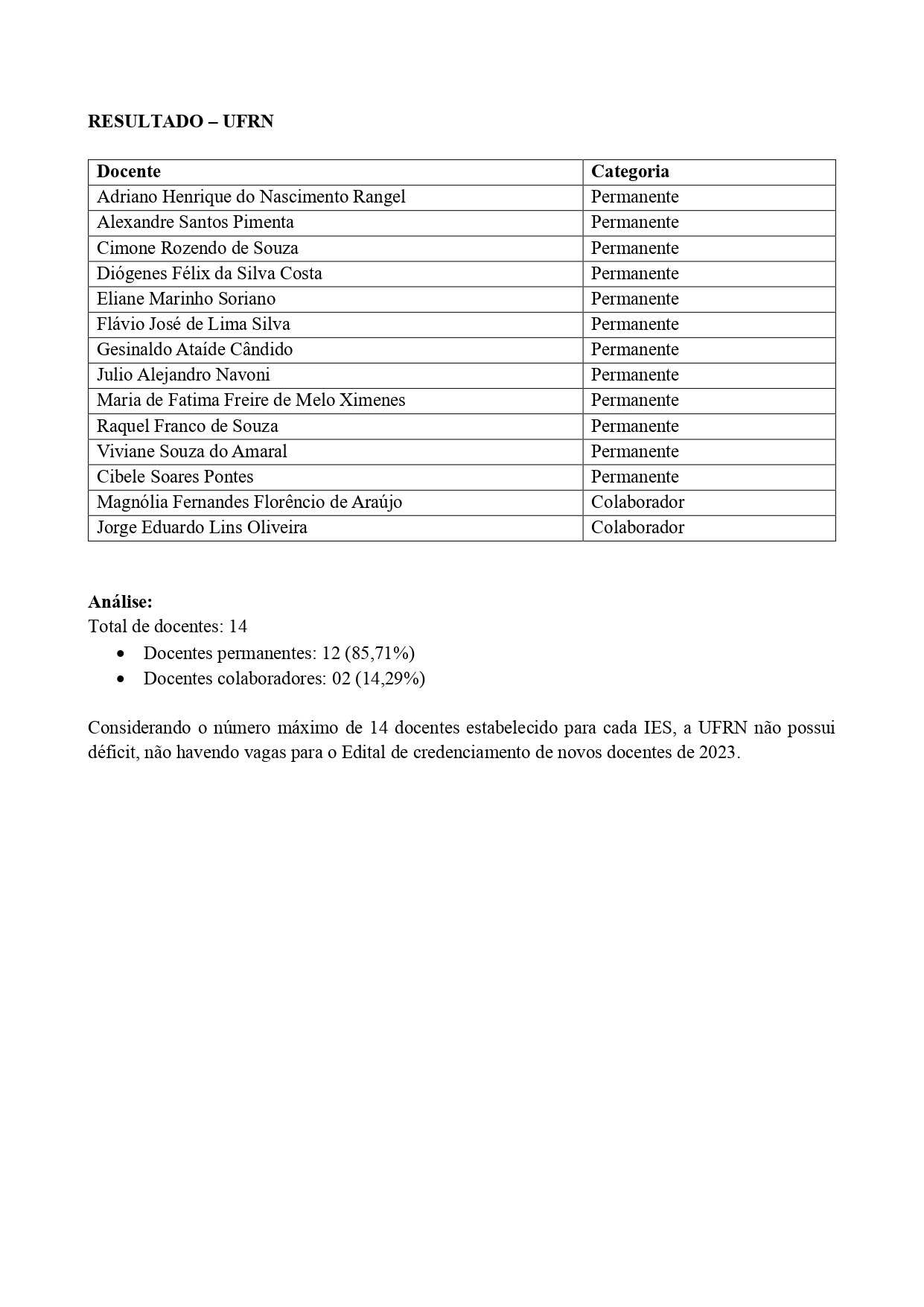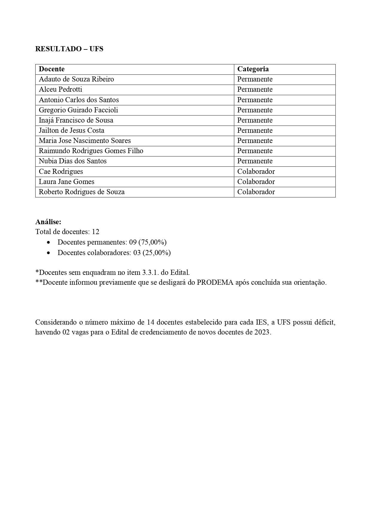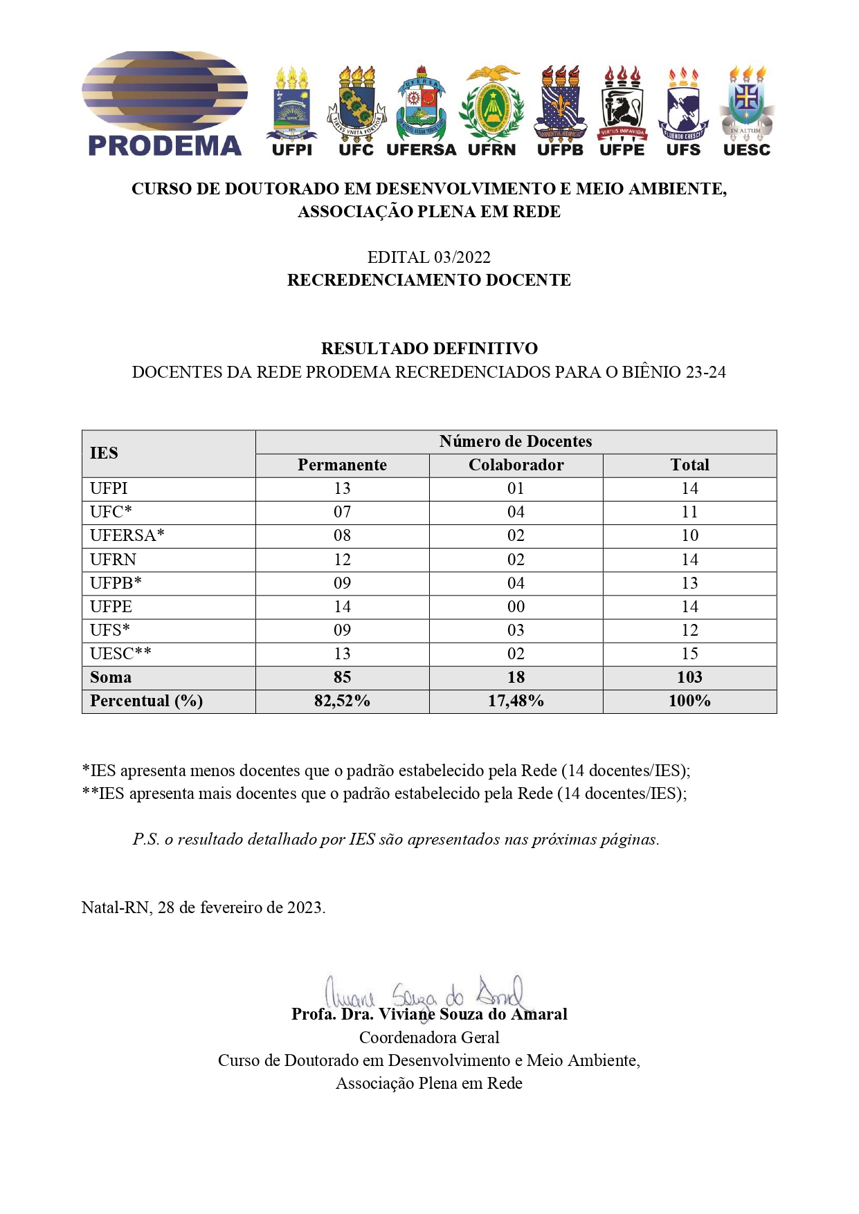 O Colegiado Geral do Curso de Doutorado em Desenvolvimento e Meio Ambiente, Associação Plena em Rede, divulga o resultado final do Edital 03/2022, Recredenciamento Docente.