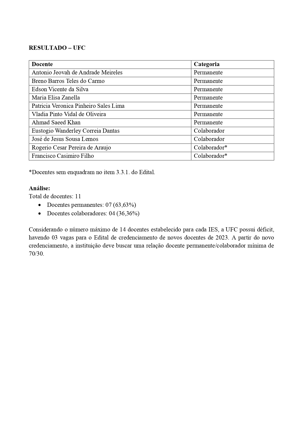 RECREDENCIAMENTO DOCENTE - RESULTADO DEFINITIVO